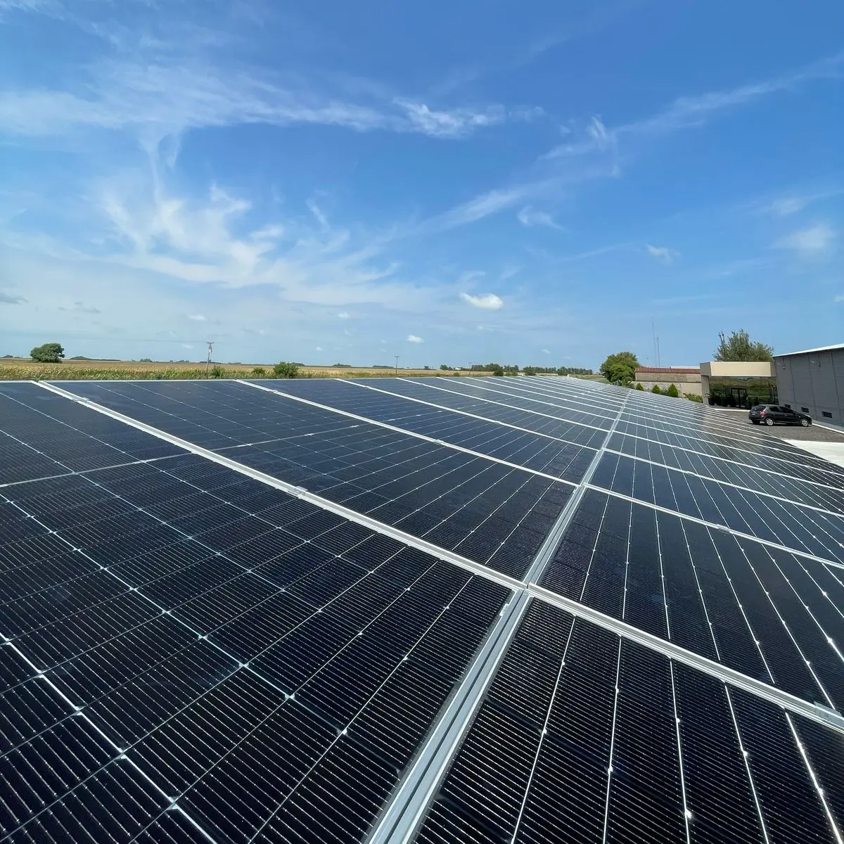 La planta agroindustrial en Chovet, Santa Fe, ha incorporado un sistema de paneles solares fotovoltaicos para optimizar su eficiencia energética y reducir su impacto ambiental. Este sistema está compuesto por paneles solares monocristalinos, los cuales aprovechan la radiación solar para generar electricidad de manera limpia y eficiente.